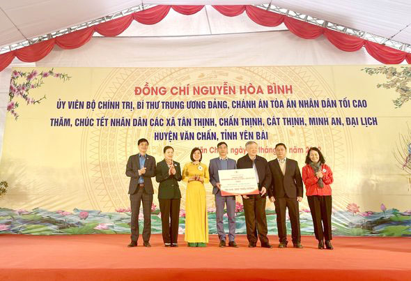 Đồng chí Nguyễn Hòa Bình – Ủy viên Bộ Chính trị, Bí thư Trung ương Đảng, Chánh án Tòa án nhân dân tối cao tặng quà Tết tại Yên Bái