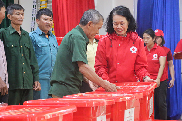 Trung ương Hội Chữ thập đỏ Việt Nam khẩn trương vận chuyển thùng hàng gia đình từ kho tại Hà Nội để kịp đến với bà con Nghệ An và Hà Tĩnh. Cụ thể: Hỗ trợ tỉnh Nghệ An 100 triệu đồng và 200 thùng hàng gia đình; tỉnh Hà Tĩnh 50 triệu đồng…