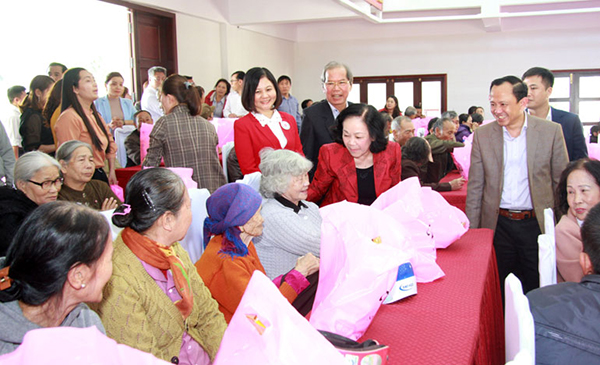Trưởng Ban Dân vận Trung ương Trương Thị Mai và lãnh đạo Trung ương Hội trao quà Tết tại Lâm Đồng