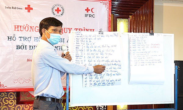 Tham dự lớp tập huấn có 24 học viên là cán bộ Hội Chữ thập đỏ tỉnh, Hội Chữ thập đỏ huyện Hàm Thuận Nam, lãnh đạo UBND, Hội Chữ thập đỏ và 13 trưởng thôn, khu phố của 2 xã, thị trấn: Tân Thuận, Thuận Nam thuộc huyện Hàm Thuận Nam. Cán bộ Trung…