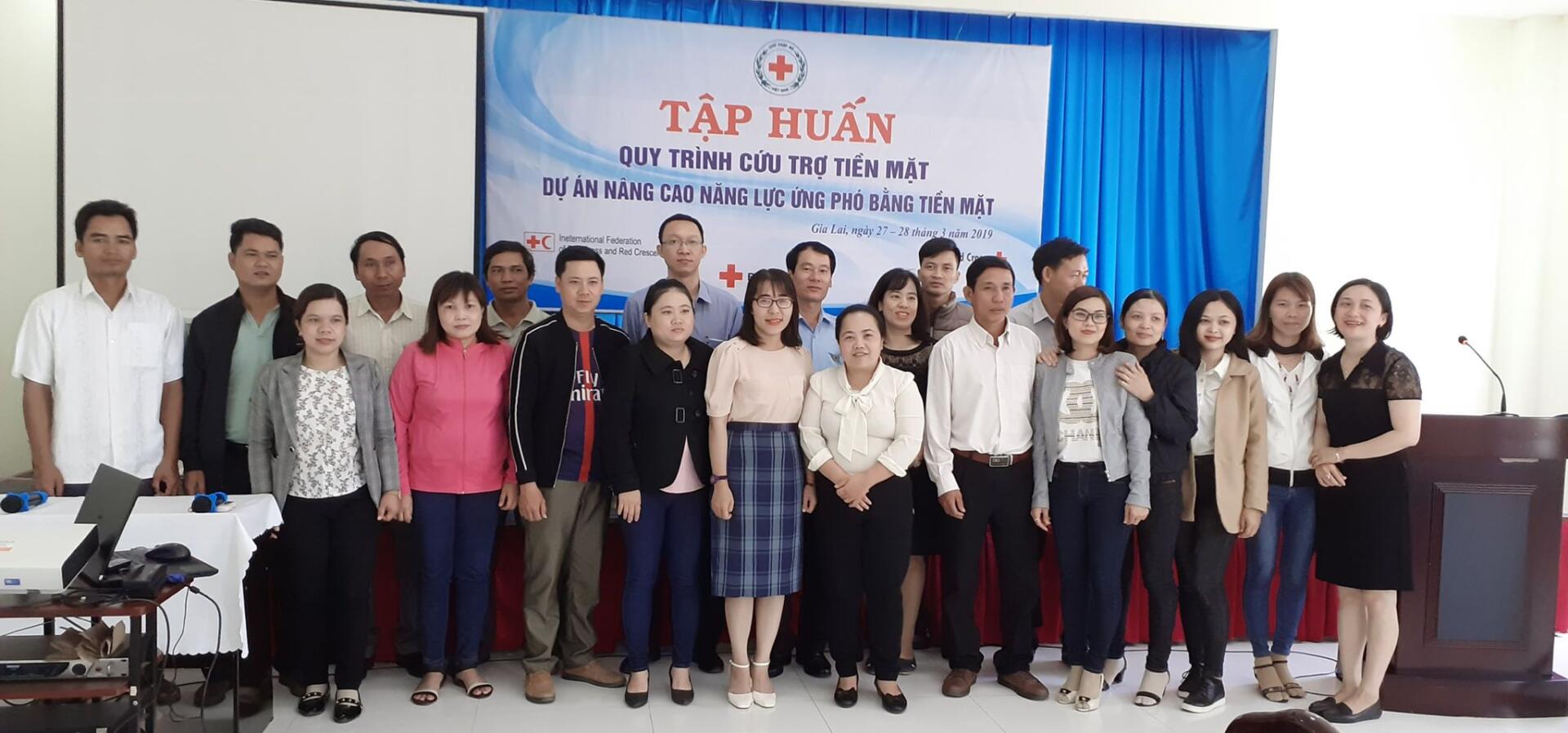 From March 27-28, in Pleiku city, the Vietnam Red Cross cooperated with Gia Lai Red Cross in organizing a training course to guide the cash transfer program process for 25 participants from district and communal Red Cross branches of 4 districts located in the disaster areas: Kong Chro, Ia Pa, Kbang and Chu Prong. Participants are district…
