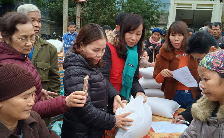Giving 127 gifts to poor people in Dinh Cu commune, Lac Son district, Hoa Binh province
