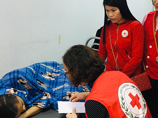 This afternoon, December 29, 2018, Nghe An Red Cross directly visited and gave 10 million VND to Thai Doan Hiep, who is taking care of younger brother Thai Doan Hoa, who was being treated by an accident at functional rehabilitation faculty of Nghe An General Hospital (this money is mobilized from benefactors in Hanoi and Nghe An)….