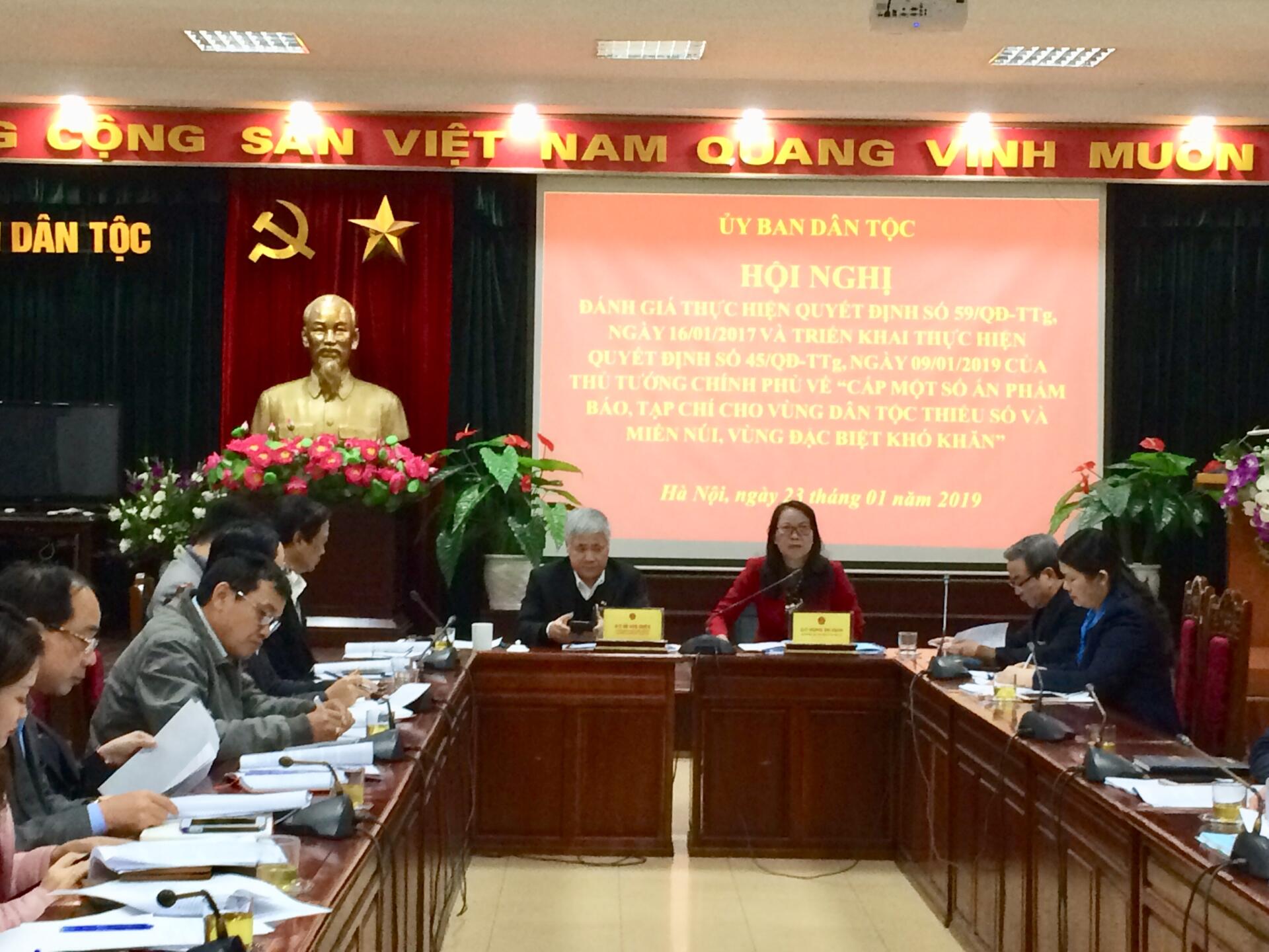Ngày 23/1, tại Hà Nội, Uỷ ban Dân tộc đã tổ chức Hội nghị đánh giá thực hiện Quyết định số 59/QĐ-TTg của Thủ tướng Chính phủ và triển khai Quyết định số 45/QĐ-TTg của Thủ tướng về “Cấp một số ấn phẩm báo, tạp chí cho vùng dân tộc thiểu số miền núi, vùng…