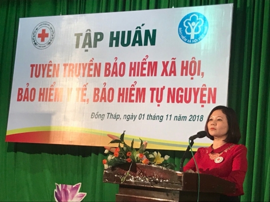 Ngày 1/11/2018, tại TP Cao Lãnh (tỉnh Đồng Tháp), Trung ương Hội Chữ thập đỏ (CTĐ) Việt Nam, Hội Chữ thập đỏ tỉnh Đồng Tháp và Bảo hiểm xã hội (BHXH) tổ chức tập huấn công tác tuyên truyền Bảo hiểm xã hội, Bảo hiểm Y tế, Bảo hiểm tự nguyện cho 150 học viên…
