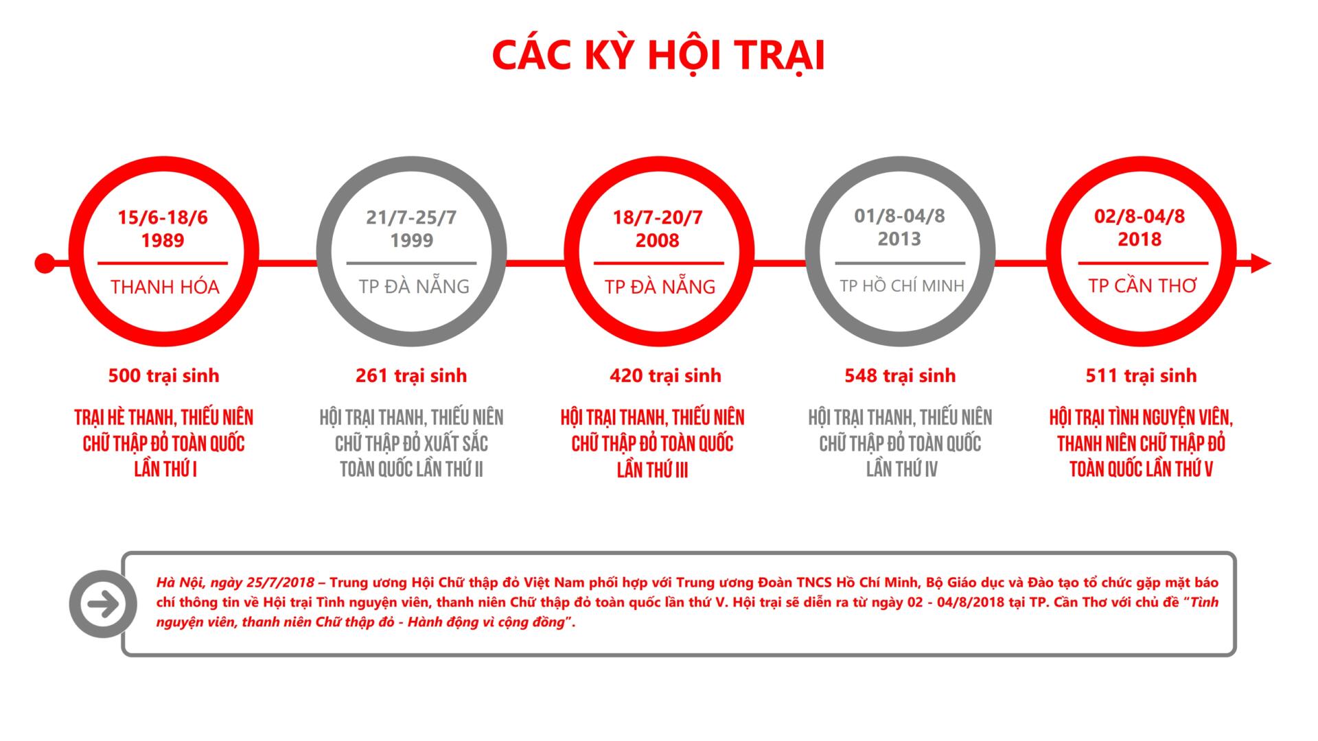 Hội trại đầu tiên được tổ chức tại Thanh Hóa năm 1989. Năm nay là lần thứ V Hội trại diễn ra với sự tham dự của 511 đại biểu tình nguyện viên, thanh niên Chữ thập đỏ tiêu biểu trong toàn quốc và các đại biểu quốc tế đến từ 7 Hội Chữ thập…
