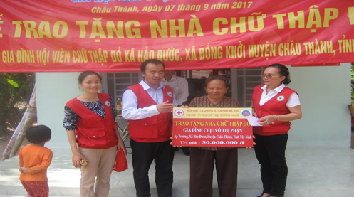 Đội xây dựng nhà Chữ thập đỏ huyện Châu Thành (Tây Ninh) mang niềm vui đến người nghèo