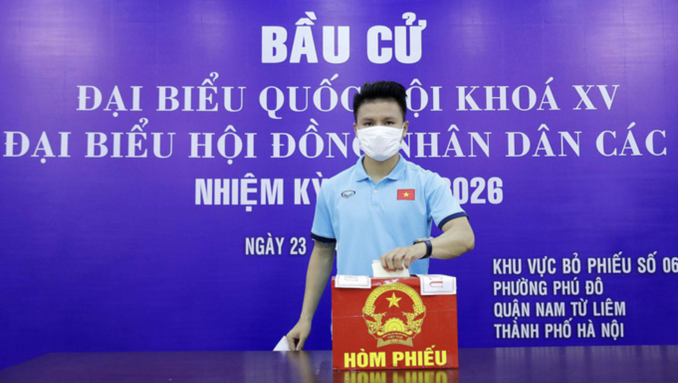 Cận cảnh các tuyển thủ bóng đá Việt Nam vui tươi bỏ phiếu bầu cử