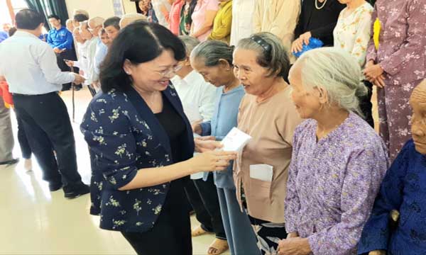 Phó Chủ tịch nước Đặng Thị Ngọc Thịnh cùng lãnh đạo các ban, ngành, địa phương tặng quà cho các gia đình chính sách