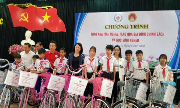 Hưởng ứng Tháng Nhân đạo 2020, nhân Tháng hành động vì trẻ em năm 2020 và thiết thực chào mừng Ngày quốc tế thiếu nhi 1/6, Phó Chủ tịch nước Đặng Thị Ngọc Thịnh cùng lãnh đạo các cơ quan, ban ngành, lãnh đạo địa phương đã trao tặng 8 căn nhà tình nghĩa (70 triệu đồng/ căn) cho các hộ nghèo; 50 suất quà cho gia đình chính sách trị giá 100 triệu đồng; 60 suất quà cho học sinh nghèo hiếu học (300.000 đồng/ suất); tặng 20 xe đạp trị giá 26 triệu đồng cho các em học sinh có hoàn cảnh khó khăn; phát 200 phiếu tham gia phiên “Chợ Nhân đạo” (mỗi phiếu 500.000 đồng) cho người dân nghèo bị ảnh hưởng bởi dịch Covid-19.