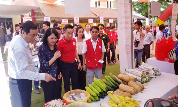 Đoàn công tác kiểm tra các mặt hàng trong phiên “Chợ Nhân đạo” do Hội Chữ thập đỏ tỉnh và huyện Đại Lộc tổ chức
