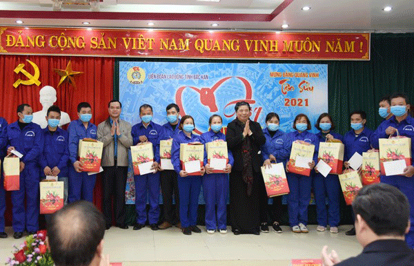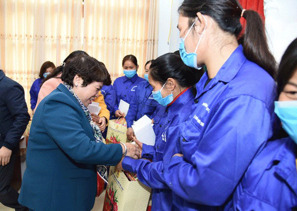 Phó Chủ tịch Thường trực Quốc hội Tòng Thị Phóng và Đoàn công tác tặng quà Tết cho công nhân,