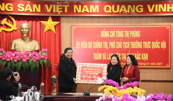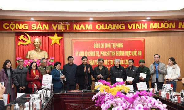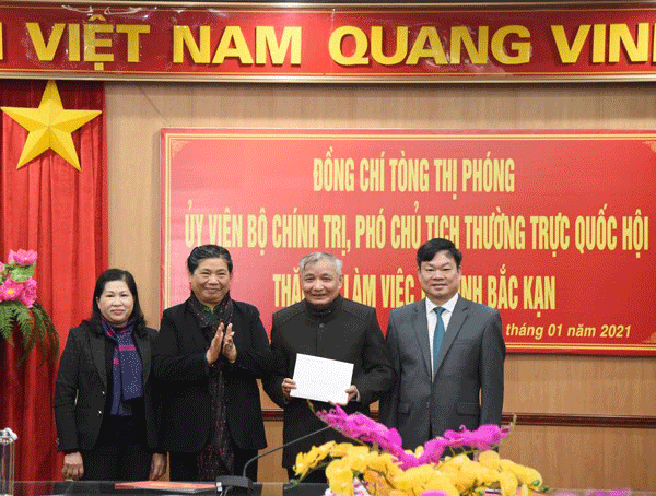 Phó Chủ tịch Thường trực Quốc hội Tòng Thị Phóng và Đoàn công tác tặng quà Tết cho các gia đình chính sách, hộ nghèo trên địa bàn tỉnh Bắc Kạn.