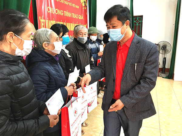 Ông Phạm Minh Phương-Chủ tịch Hội Chữ thập đỏ tỉnh Nam Định trao quà Tết cho người dân