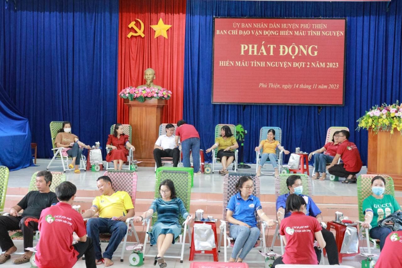 Ngày 14/11, tại Hội trường 30/3 huyện Phú Thiện, Ban Chỉ đạo vận động hiến máu tình nguyện huyện Phú Thiện và Hội Chữ thập đỏ huyện phối hợp với khoa Huyết học – Truyền máu (Bệnh viện Đa khoa tỉnh Gia Lai) và Bệnh viện Quân Y 211 – Quân đoàn 3 tổ chức phát động hiến máu tình nguyện đợt 2 năm 2023.