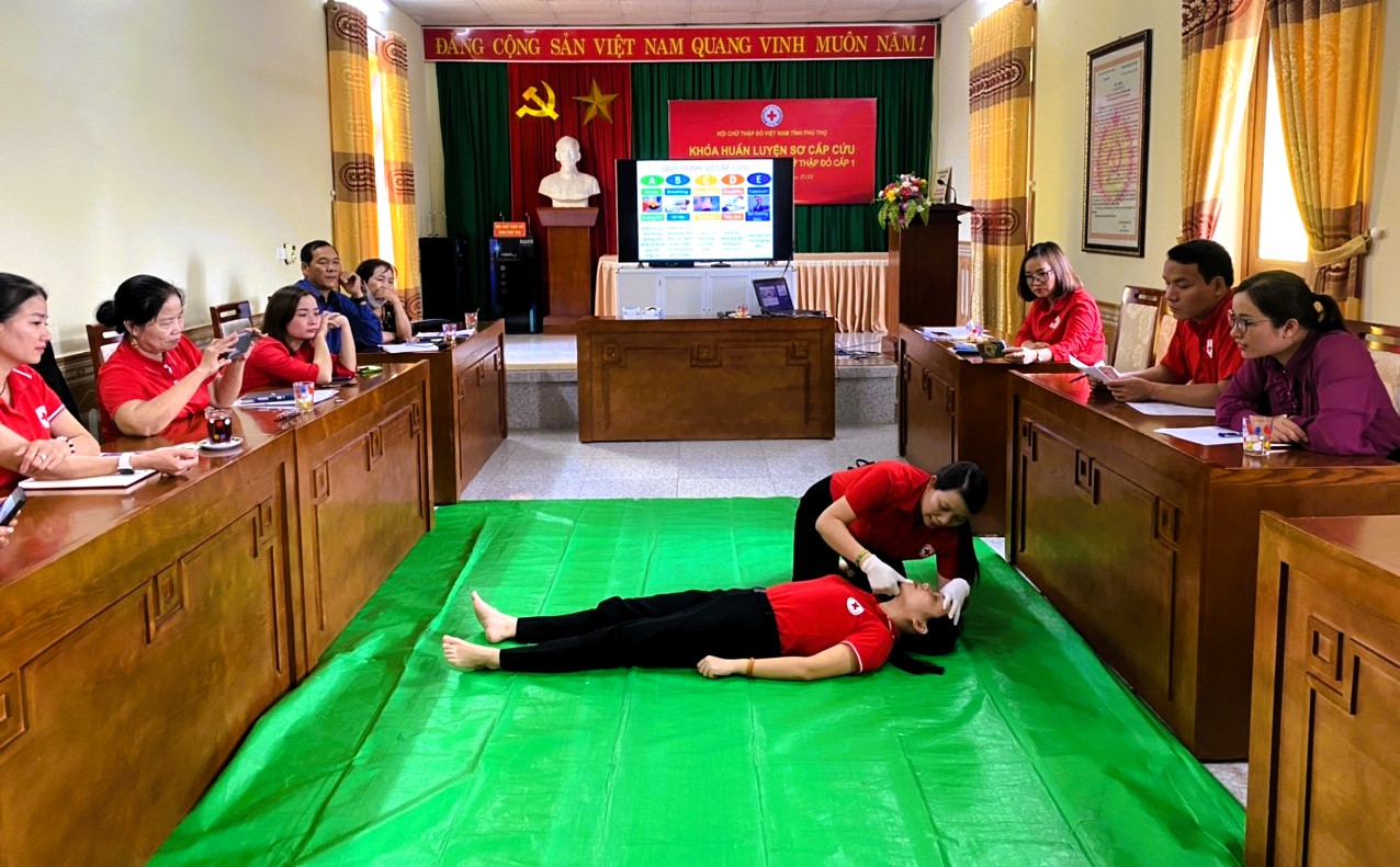 Thực hiện chương trình tập huấn, bồi dưỡng cán bộ năm 2023, Hội Chữ thập đỏ tỉnh Phú Thọ đã tổ chức khóa “Huấn luyện sơ cấp cứu cho tình nguyện viên Chữ thập đỏ cấp I”.