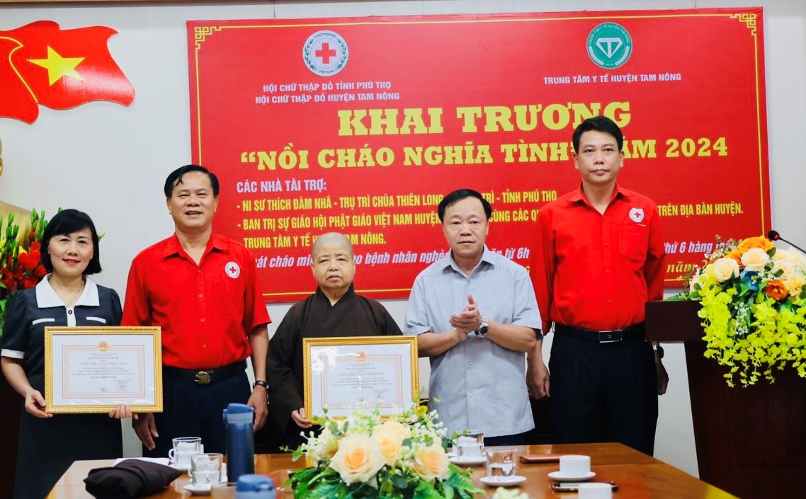 “Nồi cháo nghĩa tình” năm 2024 nhân được sự hỗ trợ từ Ni sư Thích Đàm Nhã – Trụ trì chùa Thiên Long (TP Việt Trì, tỉnh Phú Thọ); Ban Trị sự giáo Hội phật giáo Việt Nam huyện Tam Nông cùng các tăng ni phật tử trên địa bàn huyện, Trung tâm Y tế huyện với tổng giá trị là 93,6 triệu đồng. Chương trình cấp miễn phí cháo vào buổi sáng các ngày thứ 2 đến thứ 6 hàng tuần bắt đầu từ tháng 4/2024 – hết tháng 4/2025 cho các bệnh nhân, người nhà bệnh nhân thuộc hộ nghèo, cận nghèo, hộ có hoàn cảnh khó khăn đang điều trị nội trú tại Trung tâm Y tế huyện Tam Nông.