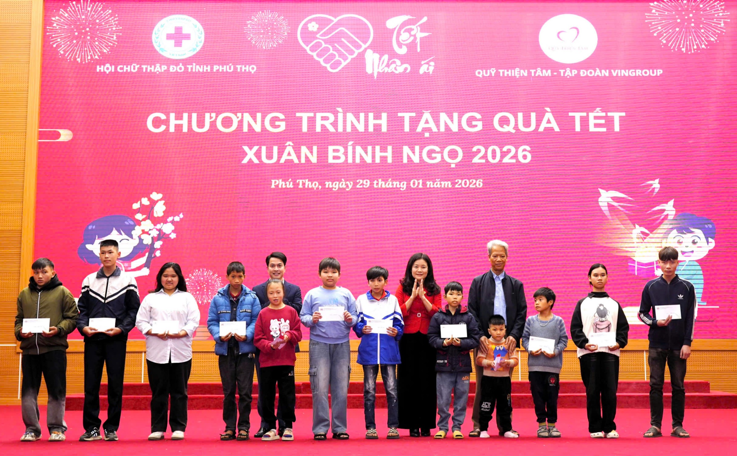 Trong khuôn khổ chương trình, Quỹ Thiện Tâm – Tập đoàn Vingroup đã trao 31 suất học bổng cho học sinh khuyết tật, có hoàn cảnh đặc biệt khó khăn; đồng thời hỗ trợ tỉnh Phú Thọ 4.500 suất quà Tết và 76 suất học bổng, với tổng trị giá trên 3,5 tỷ đồng. Ban Tổ chức cũng trao quà cho nạn nhân chất độc da cam và các hộ gia đình có hoàn cảnh khó khăn, góp phần thiết thực chăm lo Tết cho người dân.