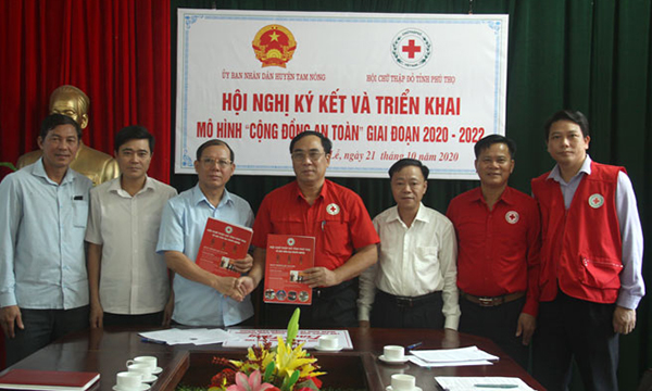 Phát biểu tại Hội nghị, Lãnh đạo huyện Tam Nông gửi lời cảm ơn tới lãnh đạo Hội Chữ thập đỏ tỉnh đã quan tâm, chọn xã Tề Lễ, huyện Tam Nông triển khai thực hiện thí điểm mô hình Cộng đồng an toàn để nhân rộng trong tỉnh. Để triển khai thực hiện đạt kết quả tốt các nội dung, tiêu chí trong chương trình phối hợp được ký kết, Lãnh đạo huyện Tam Nông đề nghị: Hội Chữ thập đỏ huyện, các phòng chuyên môn của UBND huyện, UBND xã Tề Lễ cần tích cực, chủ động tham mưu cho UBND huyện triển khai thực hiện đầy đủ, hoàn thành các nội dung, tiêu chí trong chương trình phối hợp đảm bảo chất lượng, thời gian; Giao Hội Chữ thập đỏ huyện làm đầu mối phối hợp, tham mưu để tổ chức thực hiện chương trình này. Hằng năm phối hợp với phòng chuyên môn của Hội Chữ thập đỏ tỉnh tham mưu báo cáo để UBND huyện và Hội Chữ thập đỏ tỉnh tổ chức đánh giá kết quả thực hiện và thống nhất kế hoạch phối hợp trong năm tiếp theo; Cấp ủy, chính quyền xã Tề Lễ, sau hội nghị ký kết chương trình phối hợp: Cần sớm tổ chức cuộc họp các ban, ngành, đoàn thể, cán bộ các khu dân cư, Hiệu trưởng các trường học, để truyền đạt nội dung, tiêu chí, mục đích, yêu cầu về triển khai xây dựng cộng đồng an toàn tại địa phương. Triển khai thực hiện mô hình Cộng đồng toàn nhằm nâng cao nhận thức cho người dân về nước sạch, về vệ sinh môi trường và về phòng ngừa thiên tai, thảm họa…