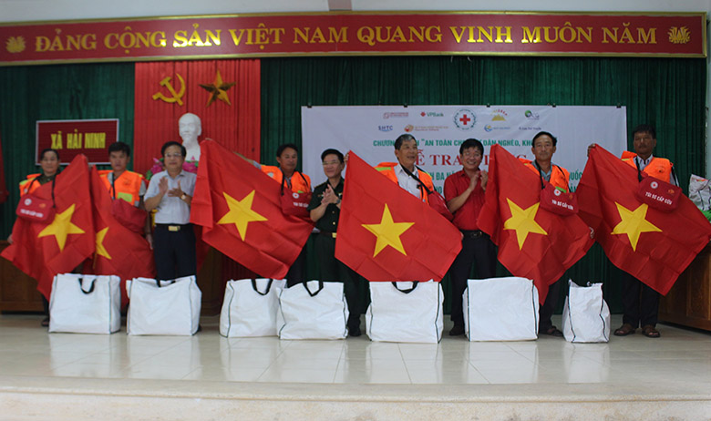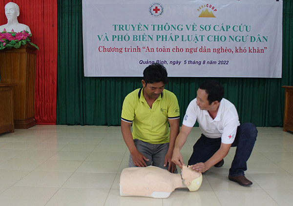 Tại buổi lễ hưởng ứng Chương trình “An toàn cho ngư dân nghèo, khó khăn” cấp tỉnh, Hội Chữ thập đỏ tỉnh Quảng Bình tổ chức phổ biến kiến thức pháp luật bảo vệ chủ quyền biển đảo; hướng dẫn các kiến thức, kỹ năng về sơ cấp cứu; tổ chức cấp phát 100 bộ áo phao cứu sinh đa năng, 100 áo phao, 100 phần quà trị giá 150.000.000 đồng; 100 lá cờ Tổ quốc cho 100 ngư dân đang tham gia đánh bắt trên biển; trao 20 lá cờ Tổ quốc, 20 túi sơ cấp cứu cho các tàu thuyền đánh bắt xa bờ.
