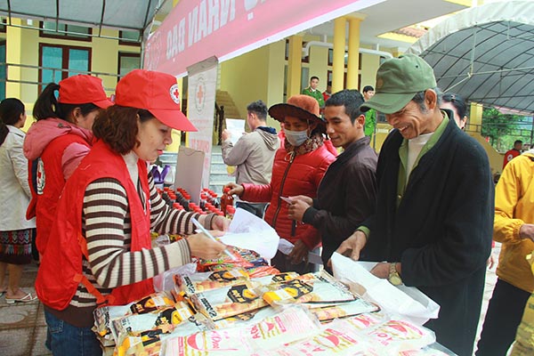 Cũng trong chuỗi hoạt động của Chương trình, Hội Chữ thập đỏ tỉnh đã tổ chức mô hình “Chợ Tết Nhân ái” Xuân Quý Mão 2023 cho 200 hộ nghèo, có hoàn cảnh khó khăn trên địa bàn xã Trường Sơn. Phiên chợ gồm 6 gian hàng với 25 mặt hàng là các nhu yếu phẩm đa dạng để phục vụ cho ngày Tết như: Nếp, gạo, xì dầu, dầu ăn, nước mắm, sữa, đường, muối, bột ngọt, dầu gội đầu, nước rữa chén…. mỗi người dân tham gia “Chợ Tết Nhân ái” với hình thức được cấp 1 phiếu đổi hàng miễn phí trị giá 300.000 đồng/phiếu. Tổng trị giá hỗ trợ tại Lễ phát động 215 triệu đồng.