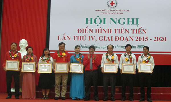 Trong đó, xuất hiện những tập thể, cá nhân xứng đáng là điển hình tiêu biểu như: trong hoạt động trợ giúp các đối tượng chính sách, người nghèo, nạn nhân chất độc da cam, người tàn tật và các đối tượng khó khăn trong xã hội với nhiều điển hình tiêu biểu như chị Dương Thị Thủy Linh (Tình nguyện viên Chữ thập đỏ huyện Minh Hóa), anh Nguyễn Quang Sự (Tình nguyện viên Chữ thập đỏ huyện Lệ Thủy)… đã không quản ngại khó khăn, gian khổ luôn đồng hành với những hoàn cảnh khó khăn; trong công tác tổ chức, vận động hiến máu tình nguyện có nhiều kết quả tích cực với nhiều cá nhân tham gia hiến máu trên 30 lần điển hình như chị Trần Thị Phương Lan (Hội viên Chữ thập đỏ phường Đồng Sơn), có 26 cá nhân hiến máu tình nguyện 20 lần, trên 300 cá nhân hiến máu tình nguyện trên 10 lần và 100.000 người tham gia hiến máu tình nguyện. Trong giai đoạn từ 2015 đến 2020, tổng giá trị các hoạt động nhân đạo đạt 217 tỷ 452 triệu đồng, giúp đỡ cho 1.039.208 lượt người.
