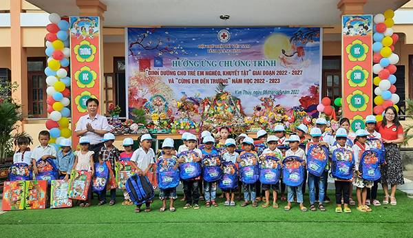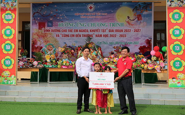 Tại Chương trình, Hội Chữ thập đỏ tỉnh đã tổ chức trao 7 triệu đồng hỗ trợ cho bếp ăn bán trú của học sinh tại Trường PTDT bán trú Tiểu học Kim Thủy; trao 10 suất học bổng, mỗi suất trị giá 500.000 đồng cho 10 em học sinh nghèo, vượt khó học tập tốt; trao 210 suất quà cho học sinh trong toàn trường gồm đồ dùng cá nhân (như kem đánh răng, bàn chải đánh răng, xà phòng tắm), đèn ông sao và bánh kẹo, sữa; trao tặng 30 suất quà gồm cặp sách, đồ dùng học tập cho 30 em học sinh do Công ty TNHH Thương mại và Dịch vụ Phương Dung hỗ trợ.