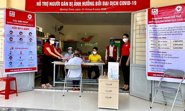 Sáng ngày 11/8/2020, Hội Chữ thập đỏ tỉnh Quảng Nam phối hợp với Bưu điện huyện Duy Xuyên tổ chức cấp phát tiền mặt hỗ trợ cho 67 hộ dân bị ảnh hưởng sinh kế bởi dịch COVID-19 tại xã Duy Vinh, với tổng số tiền 150 triệu đồng.
