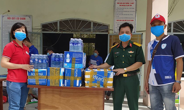 Hội Chữ thập đỏ tỉnh Quảng Nam trao tặng sữa, nước và mì tôm cho khu cách ly