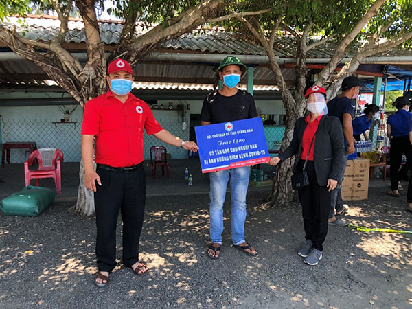 Từ đầu năm 2021 đến nay, Hội Chữ thập đỏ các cấp trong tỉnh Quảng Ngãi đã làm cầu nối vận động các tổ chức, cá nhân, mạnh thường quân ủng hộ tiền, nhu yếu phẩm để hỗ trợ cho các khu vực bị phong toả do dịch Covid -19, các trạm, chốt, khu cách ly y tế tập trung trên địa bàn tỉnh để chung tay cùng các cấp chính quyền phòng, chống dịch Covid-19.