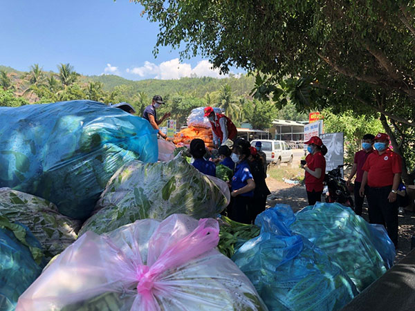 Và gần 4 tấn rau, củ quả cùng nhu yếu phẩm đến với người dân khu cách ly.