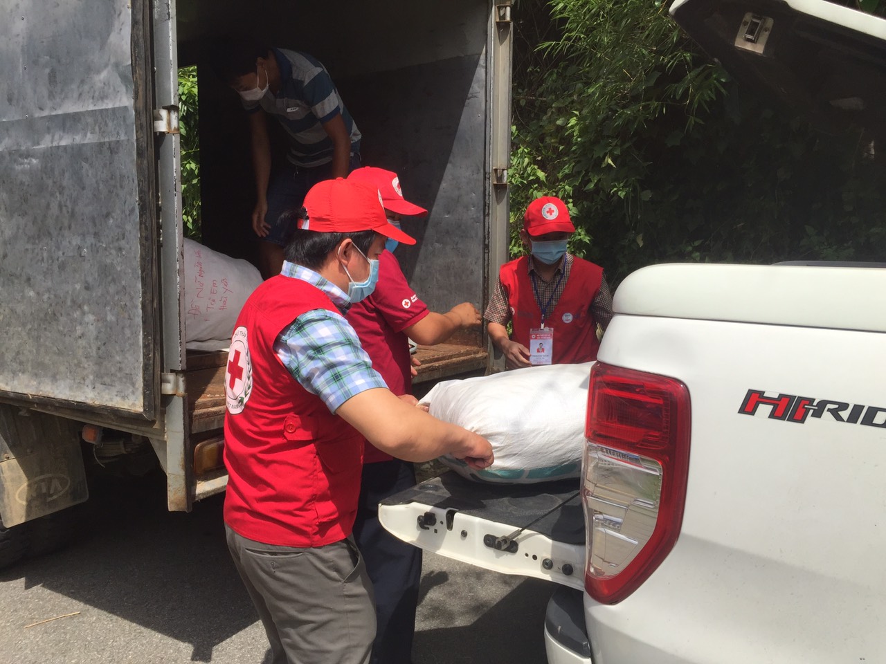 Hàng hóa và quà được đội tình nguyện viên Chữ thập đỏ tỉnh