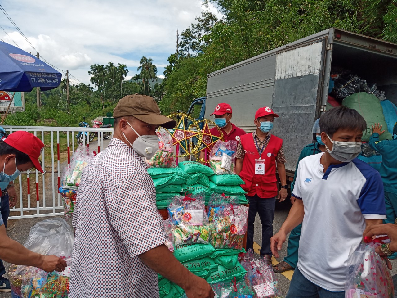 Cụ thể, Đoàn đã trao 120 phần quà (gồm: 40 suất quà, mỗi suất 05kg gạo và 80 suất: Sữa, bánh, lồng đèn cho các em thiếu nhi) và 2 tấn quần áo cũ gửi đến cho lực lượng điểm chốt chặn phòng, chống dịch huyện Trà Bồng để trao đến tay những gia đình có hoàn cảnh khó khăn bị ảnh hưởng dịch Covid-19 và tặng quà nhân dịp Tết Trung thu cho các em thiếu nhi miền núi trong khu phong tỏa thôn Gò Rô, xã Trà Phong, huyện Trà Bồng, tỉnh Quảng Ngãi.