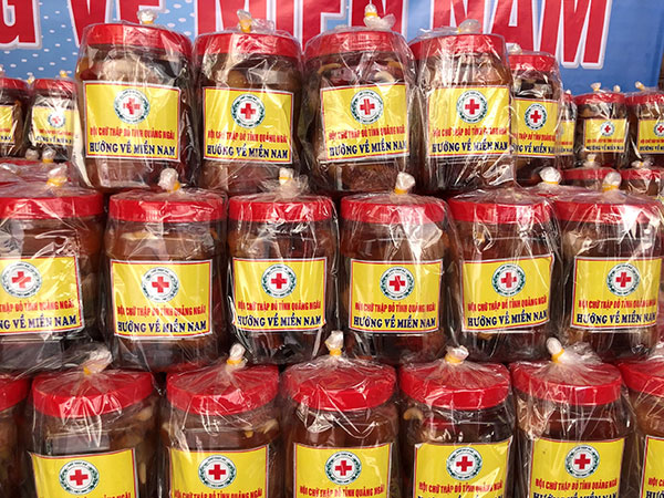 Ngày 29/7/2021, Hội Chữ thập đỏ tỉnh Quảng Ngãi đã ủng hộ hơn 430 hủ thịt heo thả mắm để gửi vào TP.Hồ Chí Minh, góp phần chia sẻ, động viên những người dân trong vùng dịch vượt qua khó khăn.