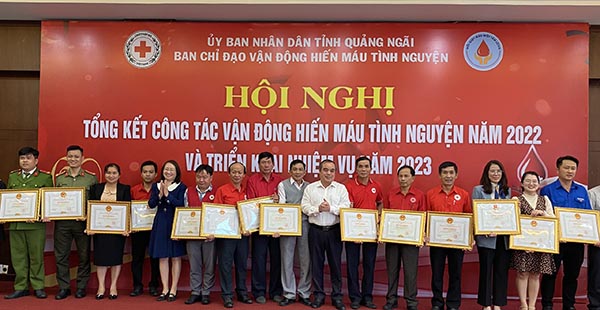 Nhân dịp này, Ban Chỉ đạo vận động HMTN tỉnh đã trao Bằng khen Chủ tịch UBND tỉnh Quảng Ngãi cho 29 cá nhân và 20 tập thể và Giấy khen của Ban chỉ đạo vận động hiến máu tình nguyện cho 53 cá nhân và 19 tập thể có thành tích xuất sắc trong phong trào hiến máu tình nguyện năm 2022.
