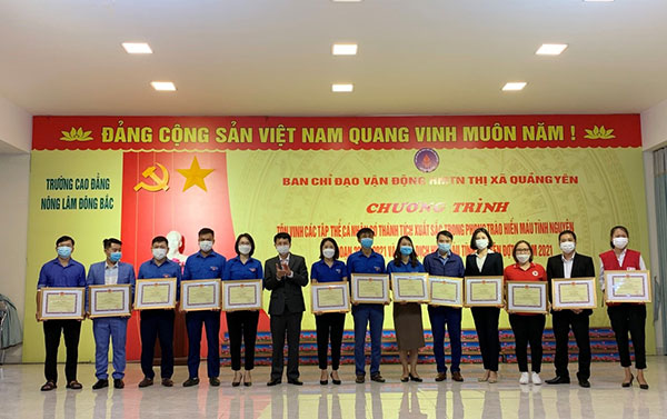 Nhân dịp này, UBND thị xã Quảng Yên đã biểu dương và khen thưởng 13 tập thể và 17 cá nhân tiêu biểu có thành tích xuất sắc trong công tác hiến máu tình nguyện giai đoạn 2018-2021.