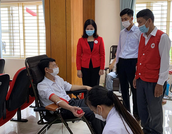 Chữ thập đỏ tham gia hiến máu.