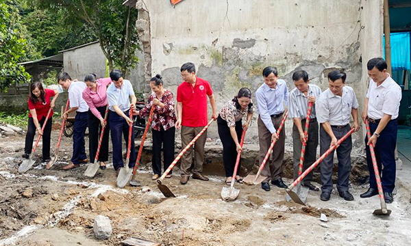 Lãnh đạo Hội Chữ thập đỏ tỉnh và TP.Uông Bí cùng chính quyền địa phương tham gia khởi công xây nhà nhân đạo cho bà Vũ Thị Ngắm ở tổ 23, khu 5, phường Bắc Sơn (TP.Uông Bí)