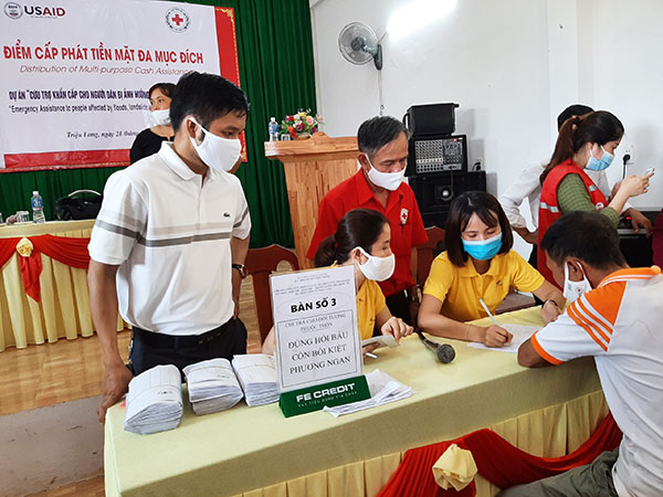 Quảng Trị là một trong 4 tỉnh được Dự án Cứu trợ khẩn cấp cho người dân bị ảnh hưởng bởi mưa lũ tại Việt Nam do Cơ quan phát triển quốc tế Hoa Kỳ tài trợ lựa chọn triển khai thực hiện hoạt động. Sau quá trình xét chọn, thẩm định hộ hưởng lợi theo đúng tiêu chí quy định, Hội Chữ thập đỏ tỉnh đã phê duyệt danh sách 768 hộ tại huyện Vĩnh Linh và Triệu Phong được nhận hỗ trợ tiền mặt đa mục đích trong đó 286 hộ nhận định mức 900 nghìn đồng/hộ và 482 hộ nhận định mức 1,8 triệu đồng/hộ. Các hộ hưởng lợi sẽ sử dụng khoản tiền nhận được để mua sắm các vật dụng thiết yếu như lương thực, thực phẩm, con giống chăn nuôi.