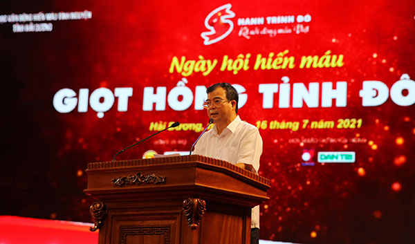 Phát biểu chỉ đạo tại ngày hội, ông Nguyễn Minh Hùng, Phó Chủ tịch UBND tỉnh Hải Dương đánh giá cao sự đóng góp tích cực của các cấp Hội Chữ thập đỏ tỉnh Hải Dương. Thời gian qua, đại dịch Covid-19 có diễn biến phức tạp, nhiều chương trình hiến máu phải lùi lại, công tác tuyên truyền, vận động hiến máu gặp rất nhiều khó khăn. Tuy nhiên, nhờ sự nỗ lực, quyết tâm và nhiều giải pháp phù hợp được triển khai, Ban Chỉ đạo đã tổ chức và tiếp nhận trên 5000 đơn vị máu nhằm phục vụ cấp cứu và điều trị trên địa bàn tỉnh.