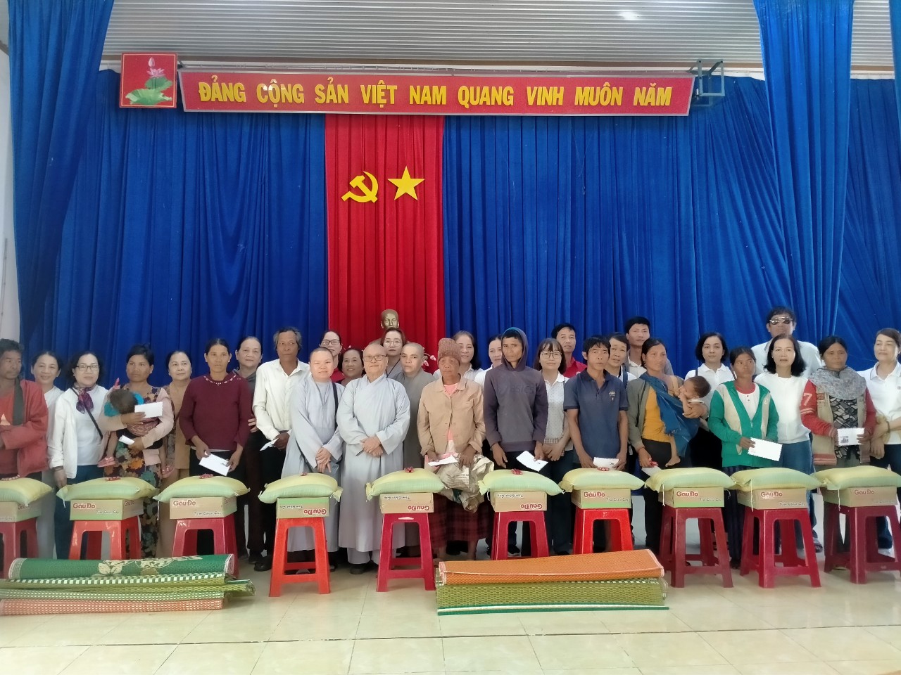 Theo đó, đoàn trực tiếp trao tặng 200 suất quà (400.000 đồng/suất) cho 200 hộ đồng bào dân tộc thiểu số nghèo, người già bệnh tật khó khăn của xã Ayun, mỗi suất quà bao gồm: 10kg gạo, 1 thùng mỳ tôm, 1 chiếc chiếu nhựa kèm theo 100 ngàn đồng tiền mặt. Tổng trị giá 80 triệu đồng do phật tử chùa Bảo Sơn và chùa Hương Sơn vận động các Mạnh Thường Quân ở thành phố Đà Nẵng tài trợ.