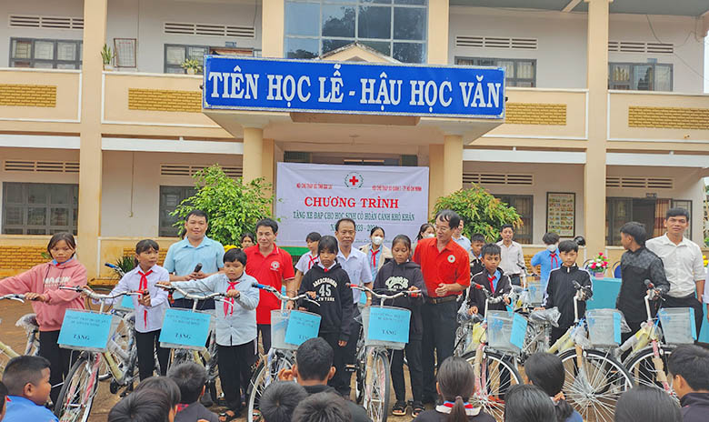 Sáng 11/9, Hội Chữ thập đỏ tỉnh Gia Lai và Hội Chữ thập đỏ huyện Đức Cơ phối hợp với Ban Giám hiệu Trường THCS Lương Thế Vinh, xã Ia Pnôn tổ chức chương trình Tặng xe đạp cho học sinh có hoàn cảnh khó khăn năm học 2023-2024.