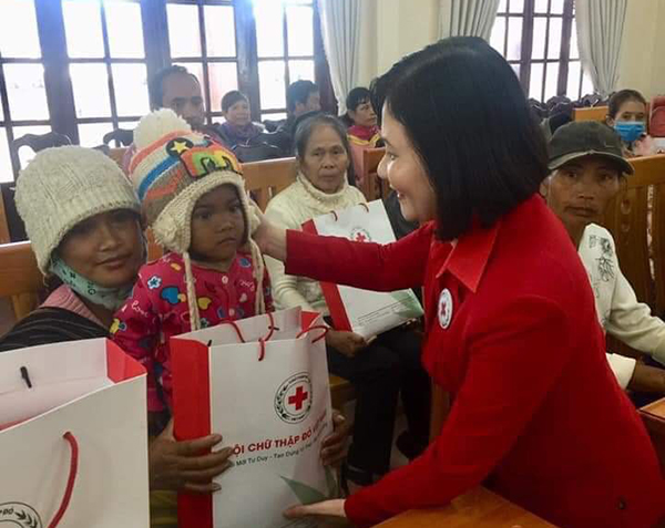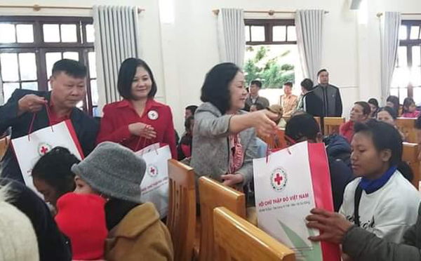 Bà Trần Thị Hồng An – Phó Chủ tịch Hội Chữ thập đỏ Việt Nam tặng quà Tết cho người dân ở Lạc Dương