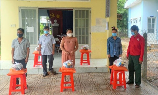 Hội Chũ thập đỏ xã Lộc Ninh, Dương Minh Châu tặng quà cho người dân khó khăn mùa dịch.