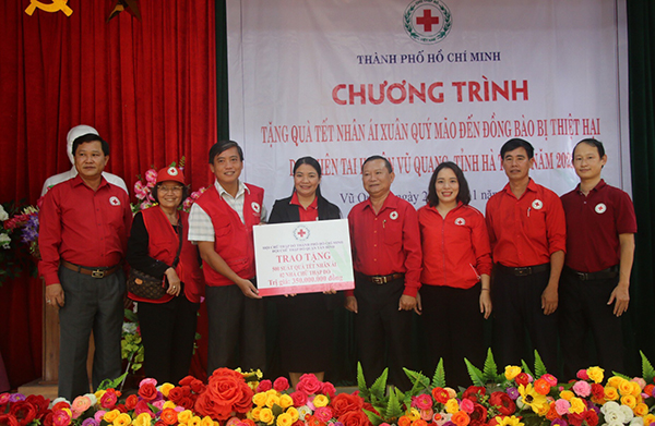 Hội Chữ thập đỏ TP. Hồ Chí Minh hỗ trợ 500 suất quà cho bà con bị ảnh hưởng bởi bão lũ tại Hà Tĩnh.