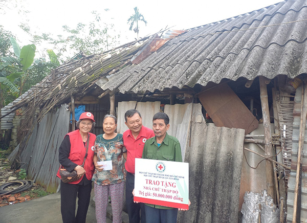 Cũng trong chương trình, Đoàn đã đến thăm hỏi, động viên và trao hỗ trợ 2 căn nhà Chữ thập đỏ trị giá 50 triệu đồng/căn do Hội Chữ thập đỏ quận Tân Bình, TP. Hồ Chí Minh tài trợ cho hộ nhà bà Cù Thị Lý ở thôn 4, xã Ân Phú và ông bà Phan Sĩ Đồng ở thôn Thuận Trung, xã Thuận Lộc, thị xã Hồng Lĩnh.