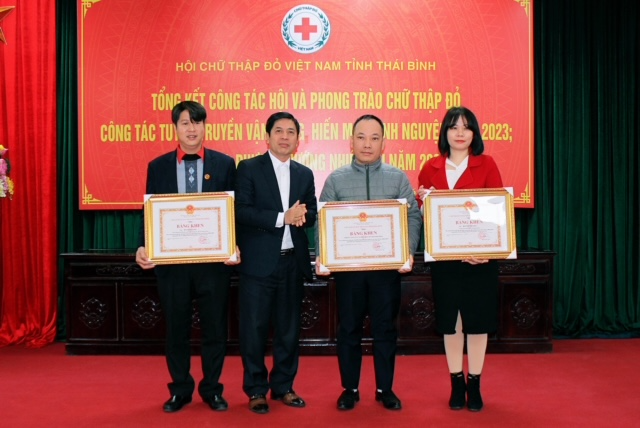 Tại Hội nghị, UBND tỉnh tặng Bằng khen cho 1 tập thể và 2 cá nhân; Trung ương Hội Chữ thập đỏ Việt Nam tặng Cờ thi đua cho Hội Chữ thập đỏ huyện Quỳnh Phụ, Bằng khen cho 11 tập thể, 20 cá nhân có thành tích xuất sắc trong công tác Hội và phong trào Chữ thập đỏ năm 2023; Ban Chỉ đạo vận động HMTN tỉnh đã tặng Giấy khen cho 10 tập thể và 11 cá nhân có thành tích xuất sắc trong công tác hiến máu và vận động HMTN năm 2023.