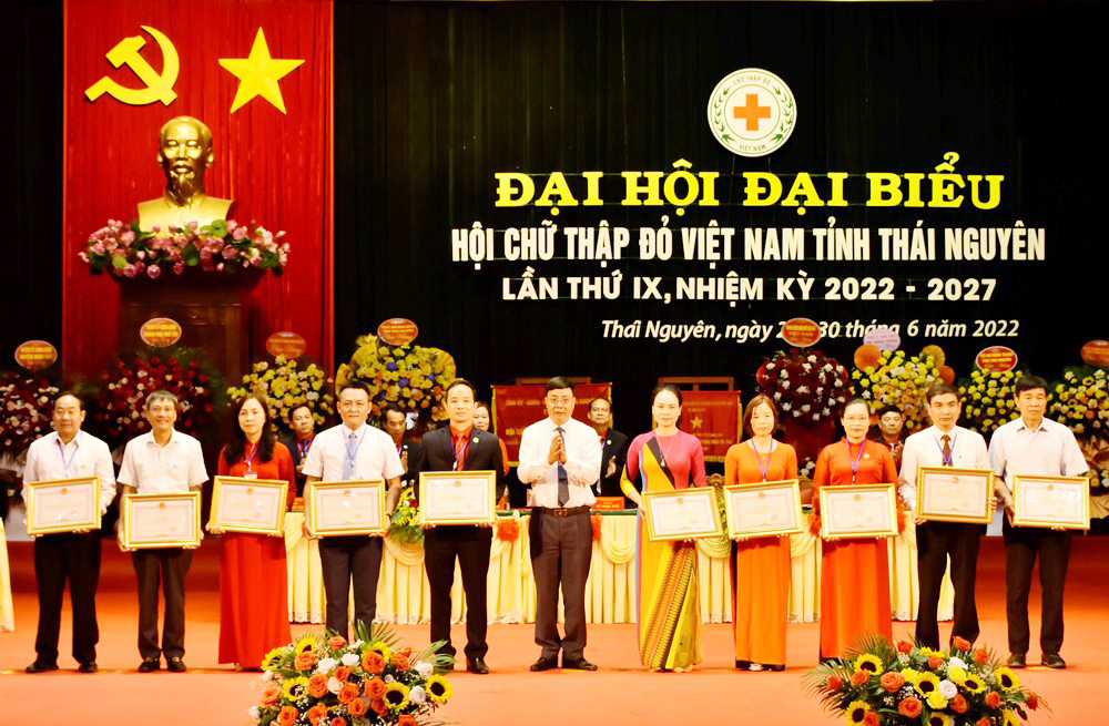 Ban tổ chức trao Kỷ niệm chương “Vì sự nghiệp nhân đạo” cho 11 cá nhân; trao Bằng khen của UBND tỉnh cho 10 tập thể, 15 cá nhân có nhiều đóng góp trong công tác Hội và phong trào Chữ thập đỏ giai đoạn 2016-2021.