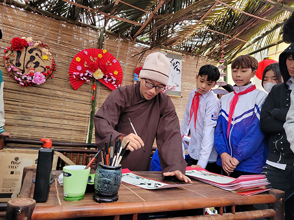 Quầy chữ Thư pháp – tặng chữ miễn phí cho mọi người dân đến tham gia các hoạt động vui chơi