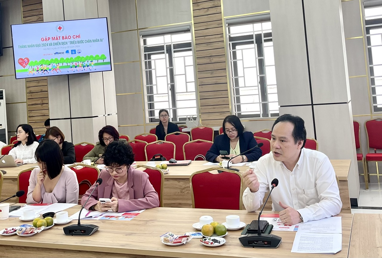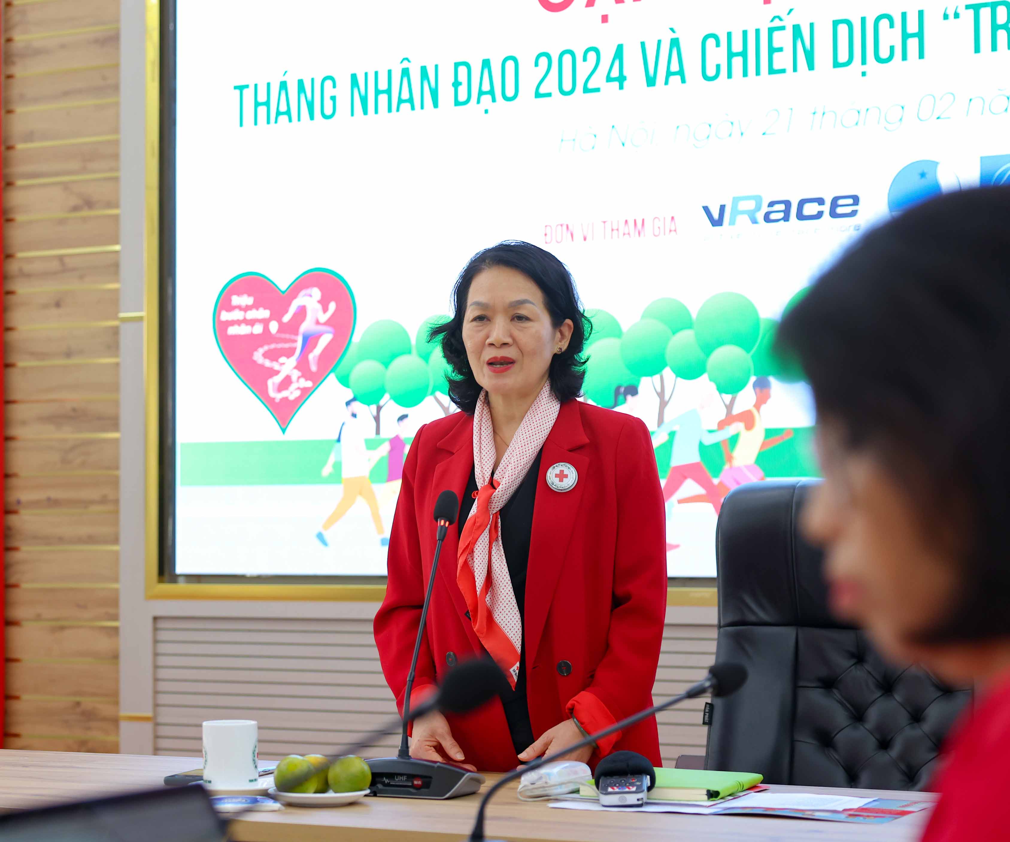 Phát biểu tại buổi gặp mặt, Chủ tịch Hội Chữ thập đỏ Việt Nam Bùi Thị Hòa cho biết Hội Chữ thập đỏ Việt Nam tiếp tục triển khai Tháng Nhân đạo năm 2024 cấp quốc gia, kỷ niệm 70 năm Chiến thắng Điện Biên Phủ và 70 năm Giải phóng thủ đô với chủ đề “Hành trình nhân đạo – Trao nhận yêu thương” gồm các hoạt động như: Phát động Chiến dịch “Triệu bước chân nhân ái” gây quỹ trợ giúp các hoàn cảnh khó khăn và vận động hiến máu tình nguyện, hiến tặng mô tạng; Chương trình “Hành trình nhân đạo – Trao nhận yêu thương” diễn ra tại 03 tỉnh: Thái Nguyên, Sơn La, Điện Biên gắn với kỷ niệm 70 năm Chiến thắng Điện Biên Phủ, 70 năm giải phóng Thủ đô và Lễ phát động Tháng Nhân đạo 2024 cấp quốc gia, kỷ niệm Ngày Chữ thập đỏ và Trăng lưỡi liềm đỏ quốc tế (8/5) sẽ được tổ chức tại TP. Điện Biên Phủ, tỉnh Điện Biên.